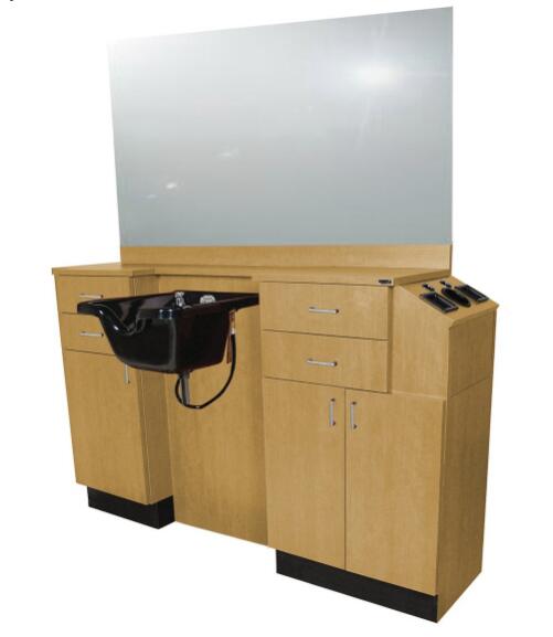 Barber wet wooden cabinet styling shampoo washing unit mirror station