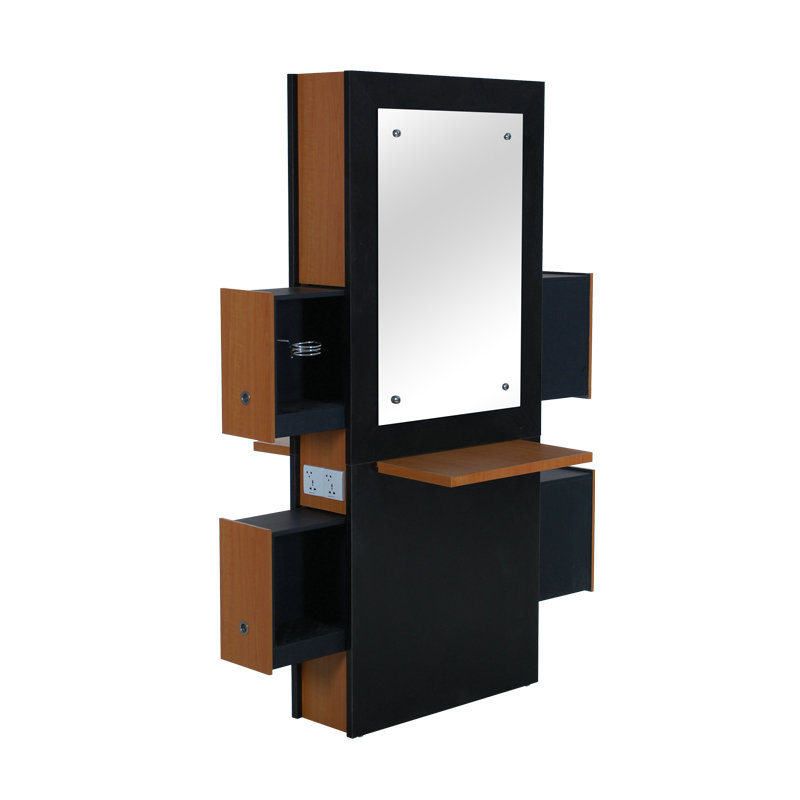Wood Barber Mirror Salon Styling Station with Storage Cabinet